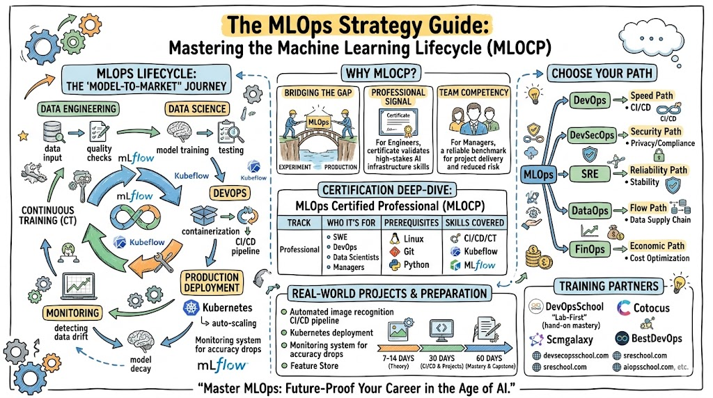 The engineers who thrive are those who adapt to the “next big thing” before it becomes the “only thing.” Machine Learning Operations is that “next thing.” The MLOCP certification isn’t just a badge; it’s a testament to your ability to lead in the age of AI. Whether you are an engineer looking to future-proof your career or a manager aiming to deliver successful AI products, mastering MLOps is your most strategic move. The road to becoming a world-class MLOps professional is rigorous, but with the right guidance and certification, it is a journey that will define the next decade of your career.